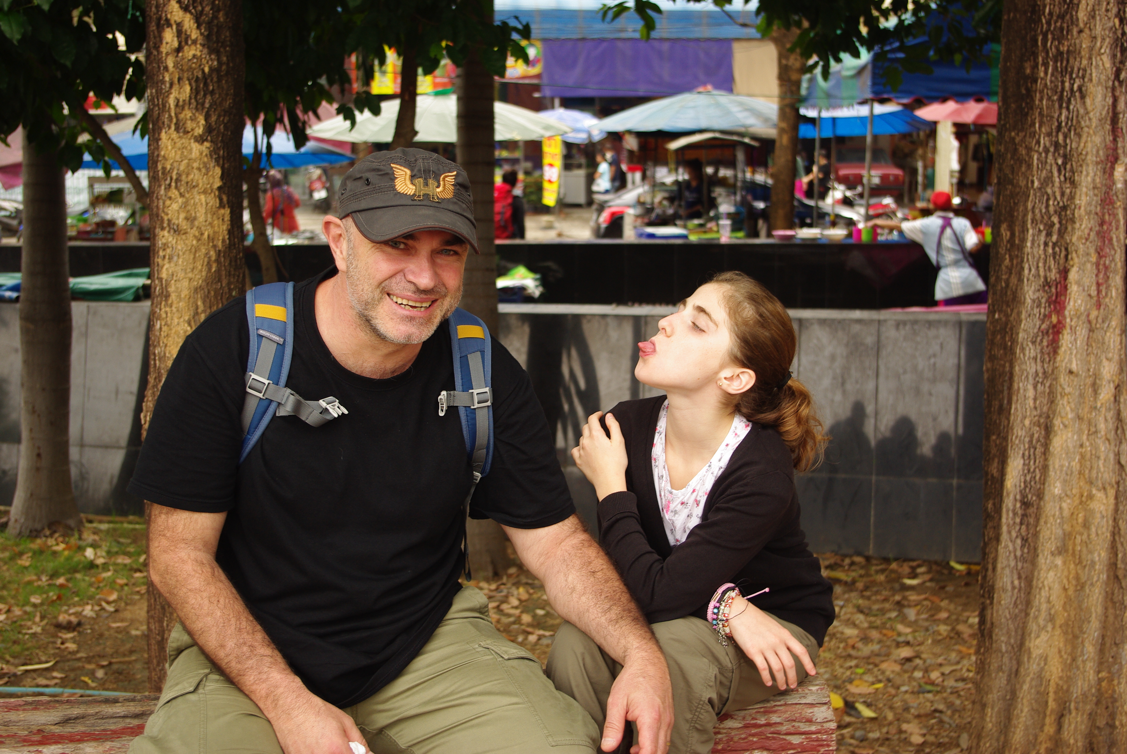 Enfin on voit quand même que le voyage ne perturbe pas trop ta fille (photo où elle te tire la langue :). Sinon dans le Wat Tham Khaopoon (j’adorrre) on dirait des touristes dans le métro 🙂