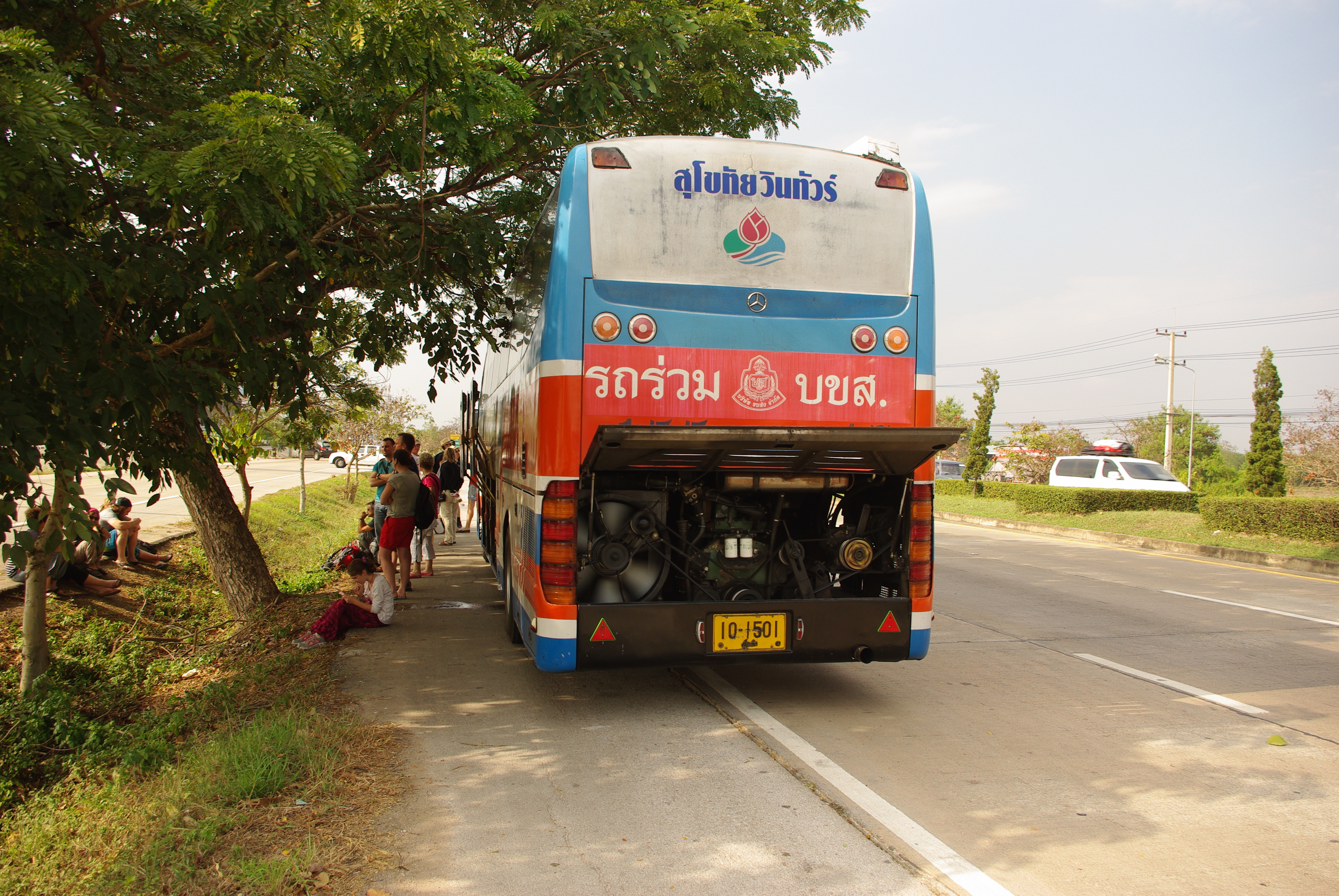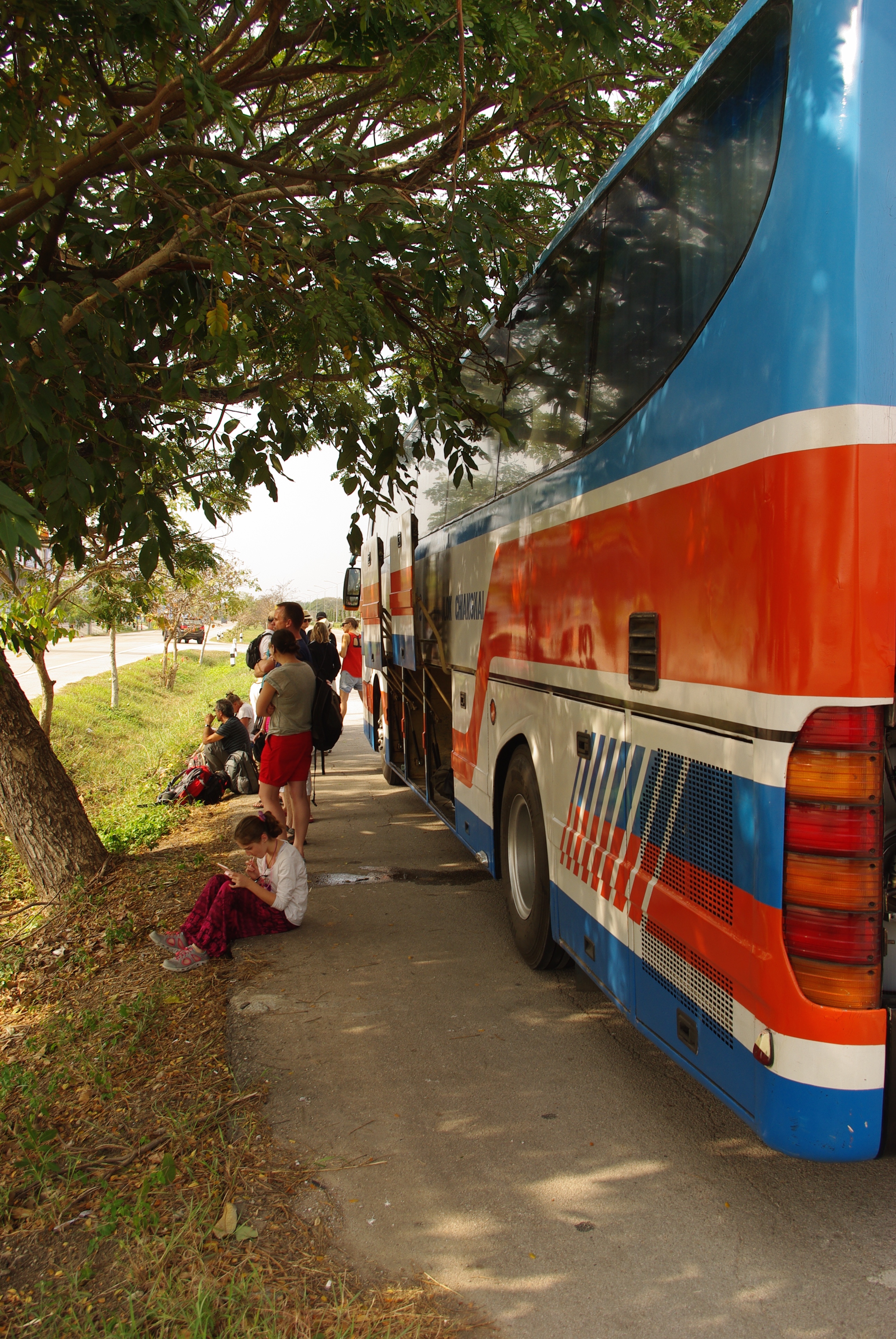 Et puis est venu le temps de quitter Sukhôthai pour Chiang Mai, alors là les spécialistes de la Thaïlande vont me dire : « Trop easy, le bus est direct !…. Et ils ont raison, sauf que le notre, il est tombé en panne sur une sorte de Nationale……lonnnnngue ATTENTE sans news, à croire que notre chauffeur avait fait toute sa carrière à la SNCF !!