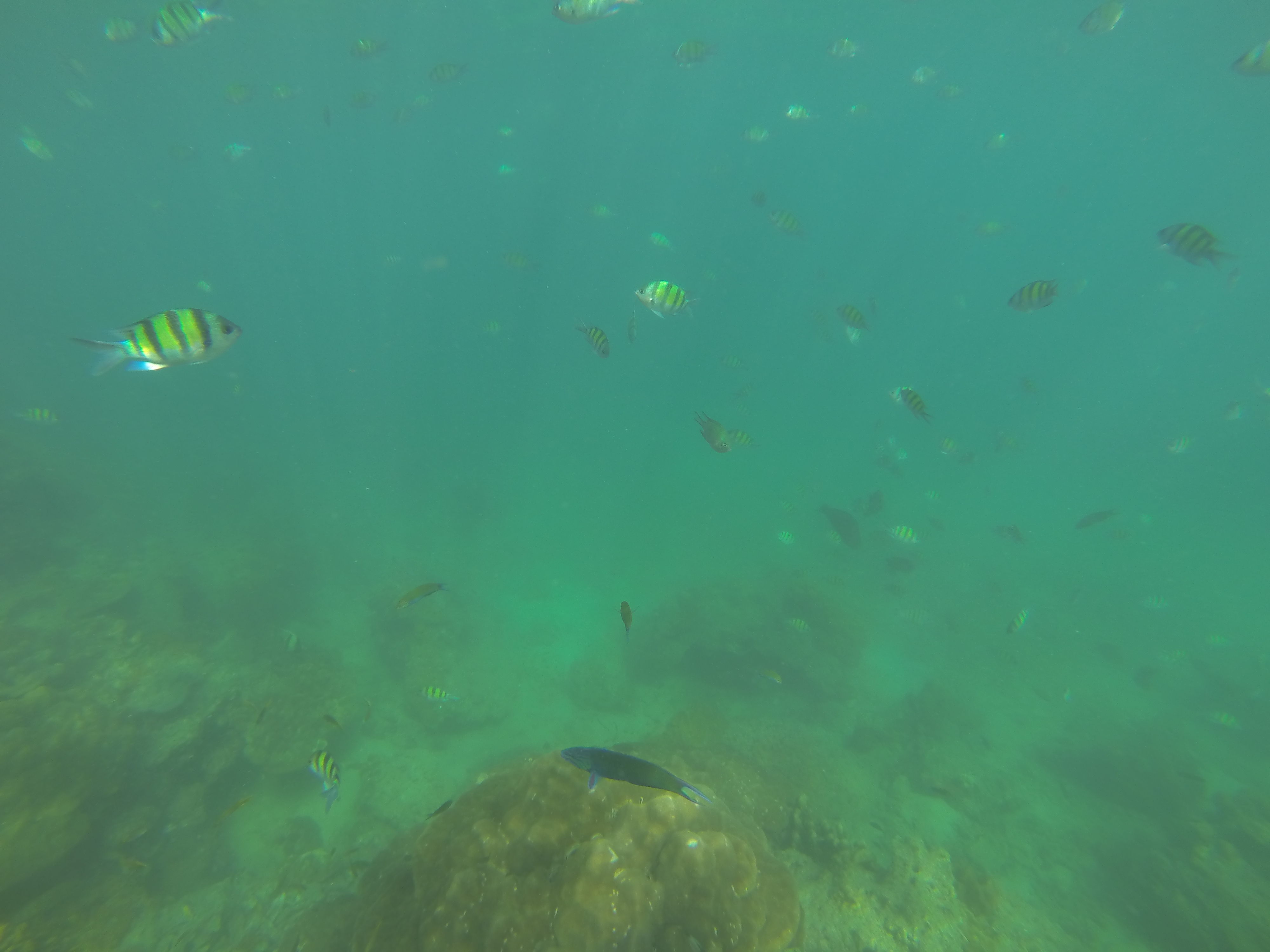 Bien évidemment, qui dit 80 mètres à la nage pour le rejoindre, dit pas de Reflex, donc vous n’aurez que 2/3 pauvres photos « gopro » !