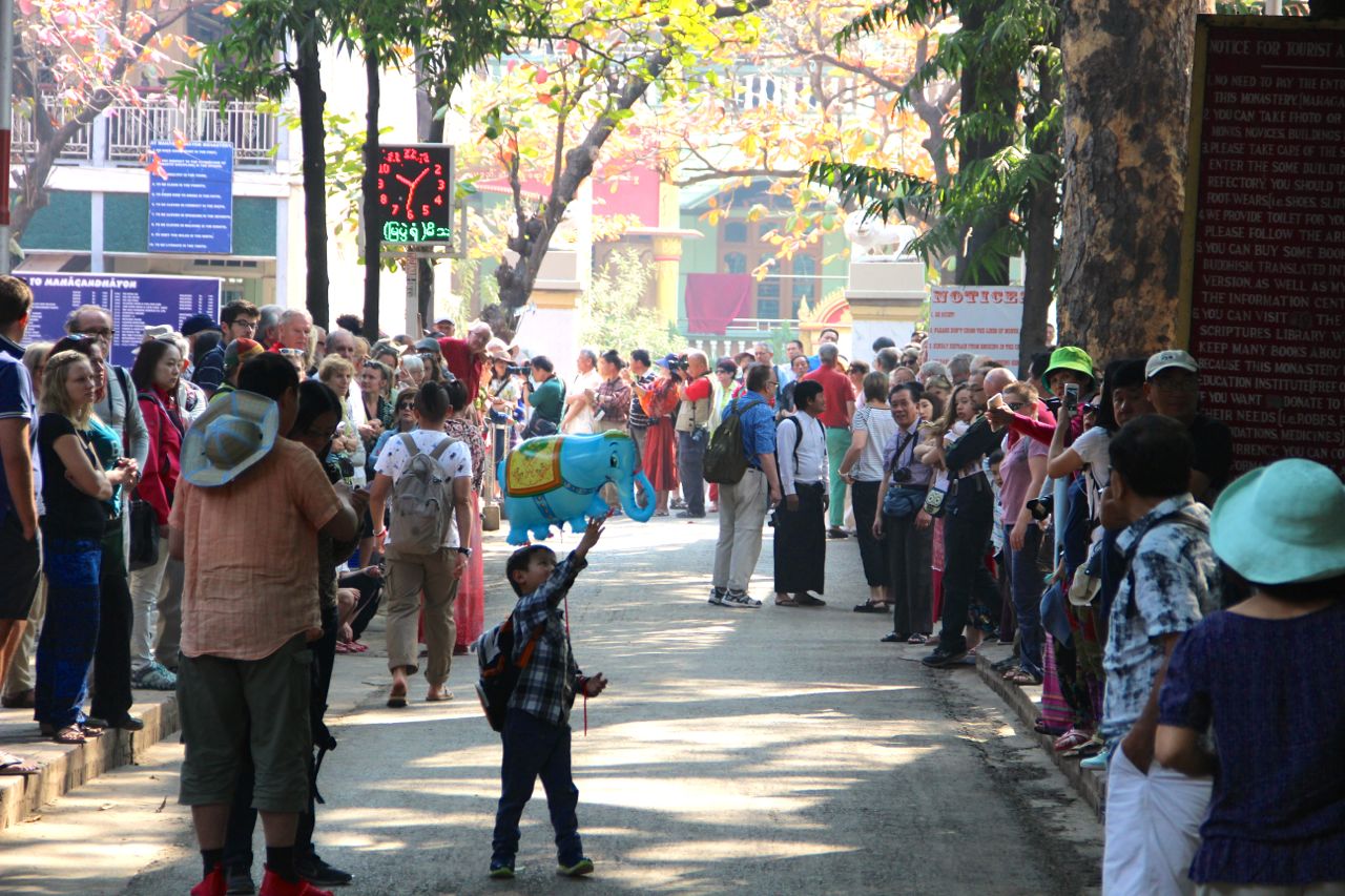Nous passerons quand même une journée à visiter les environs de Mandalay. Ce qui nous emmènera tout d’abord a la Paya Mahamuni où la ferveur religieuse a en un siècle fait grossir le bouddha présent de 15cm d’épaisseur grâce aux multiples feuilles d’or apposées par les pèlerins (ca c’est de la constance !).