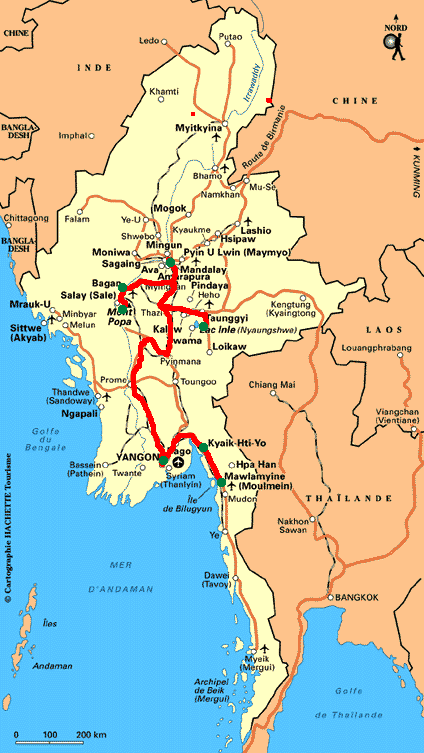 Nous avons apprécié ces 3 semaines au Myanmar où nous avons effectué un trajet assez classique pour une première :