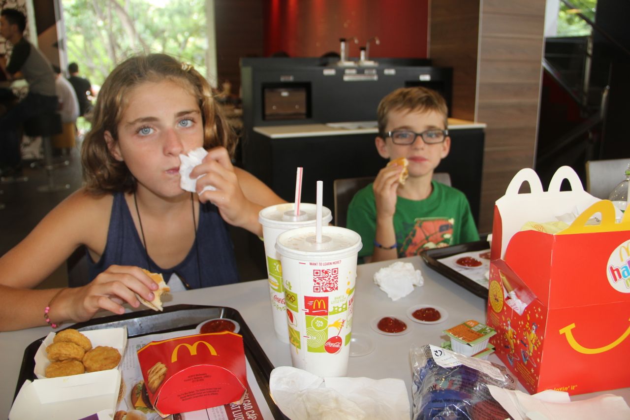 Mais nous sortirons un atout de notre manche en les emmenant dans un Mac Do repéré un peu plus tôt. Oui, je sais, ça fait pas trop aventurier notre truc, mais cela les a fait marcher 2 heures de plus, sans rechigner. En plus, trois mois sans nuggets, ni hamburgers depuis Bangkok, je peux vous dire que nous avons fait des heureux.